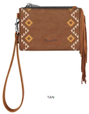 EMBROIDERED AZTEC PATTERNSIDE FRINGE DETAILTOP ZIP CLOSUREREMOVABLE WRISTLETWRANGLER ® LOGO BADGE