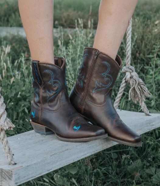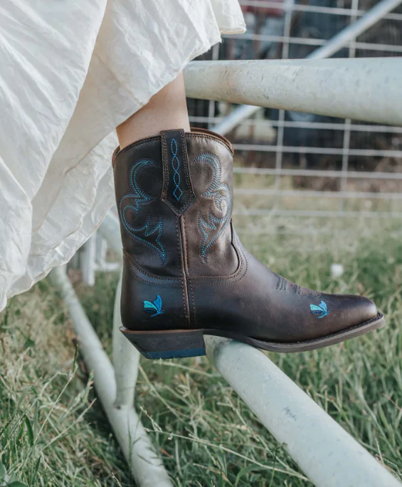 The classic square toe design of the Dolly Ladies Short boot features a Cuban heel and side zip for easy wear. The iconic Dolly’s Dream colours and iconic butterfly logo are meticulously stitched on the leather upper. A rubber sole finishes off this special boot.