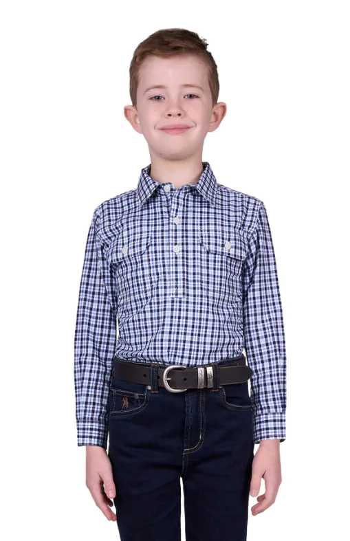 Half placket 2-Pocket long sleeve shirt, logo buttons