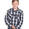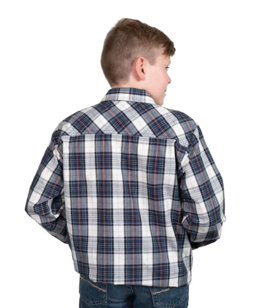 Just Country Boy’s Brayden Half Button Workshirt – Navy / Red Plaid