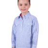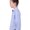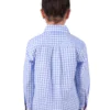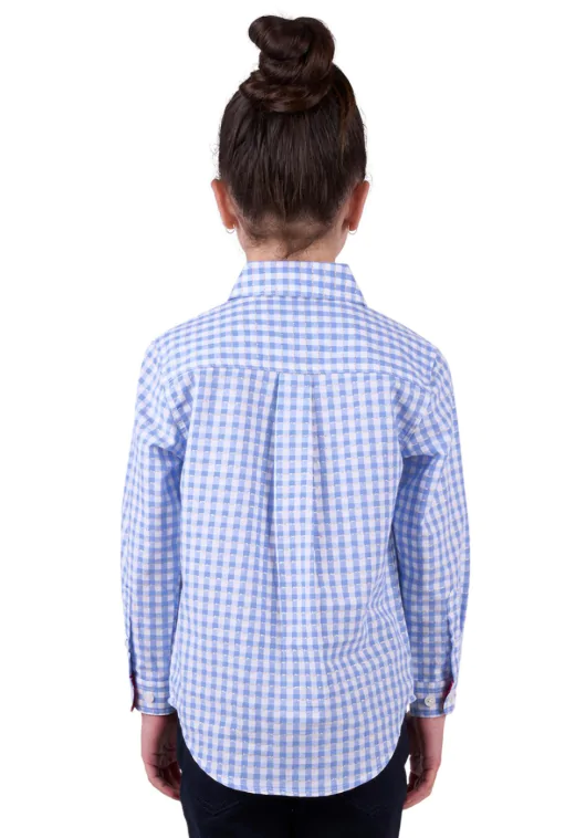 Half placket 2-Pocket long sleeve shirt, gingham with metallic yarn feature, logo buttons, contrast inside collar stand and sleeve cuffs.