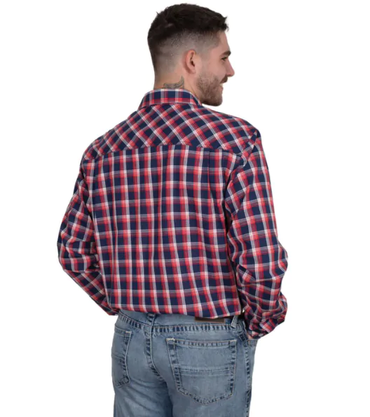 Just Country – Men’s Austin Full Button Plaid Workshirt – Navy / Red Plaid