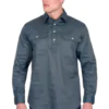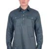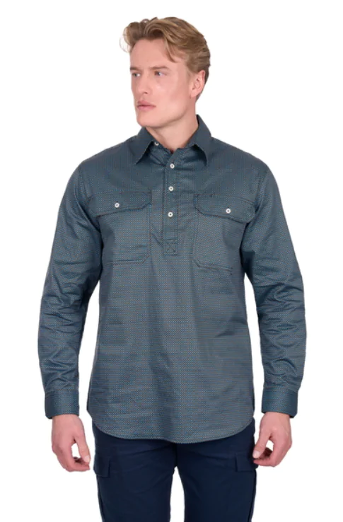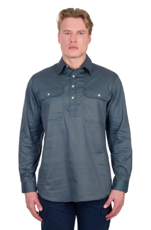 Half placket 2-pocket longsleeve shirt, one with penholder, logo buttons
