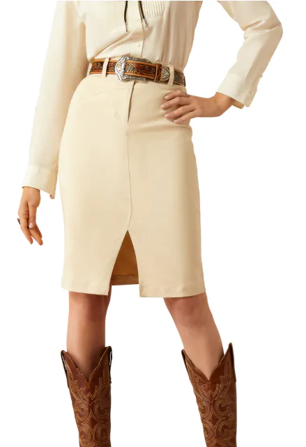 Every Western wardrobe needs a midi skirt, and this one is perfect for spring. Crafted from heavyweight cotton twill, it has yoke details and an open front for showing off your cowboy boots. Pair with the matching Robyn Jacket for an instant look.