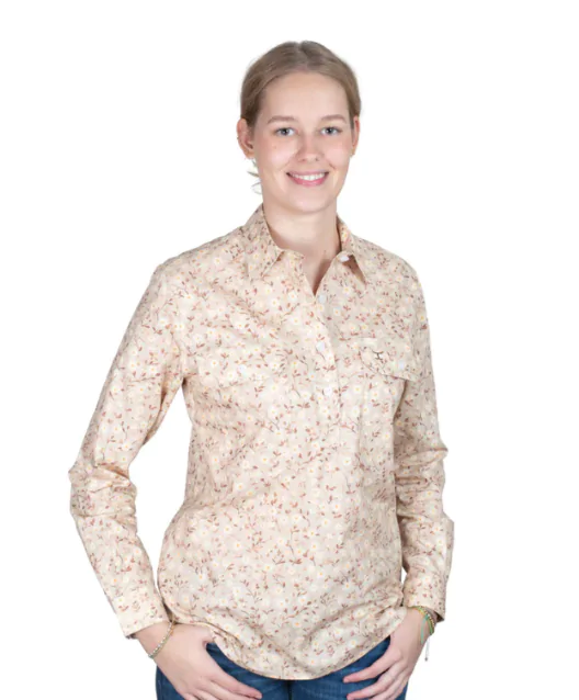 Just Country Women’s Georgie Half Button Workshirt – Fawn Floral