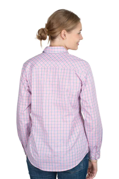 Just Country Women’s Georgie Half Button Workshirt – Light Pink & Navy Plaid