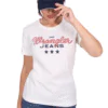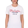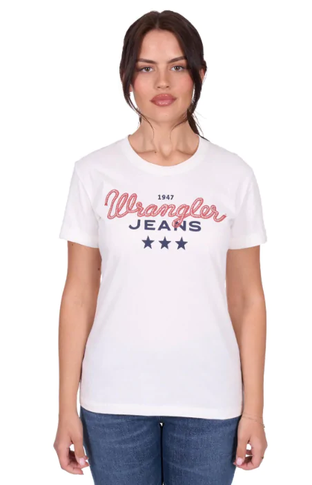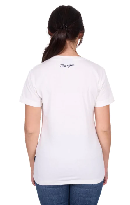 Classic tee shape, rib neck band,Wrangler logo pip on side seam